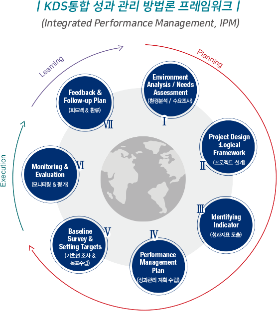 KDS는 USAID. UN. World Back 등 국제기구 방법론을 기반으로 성과관리와 사업관리를